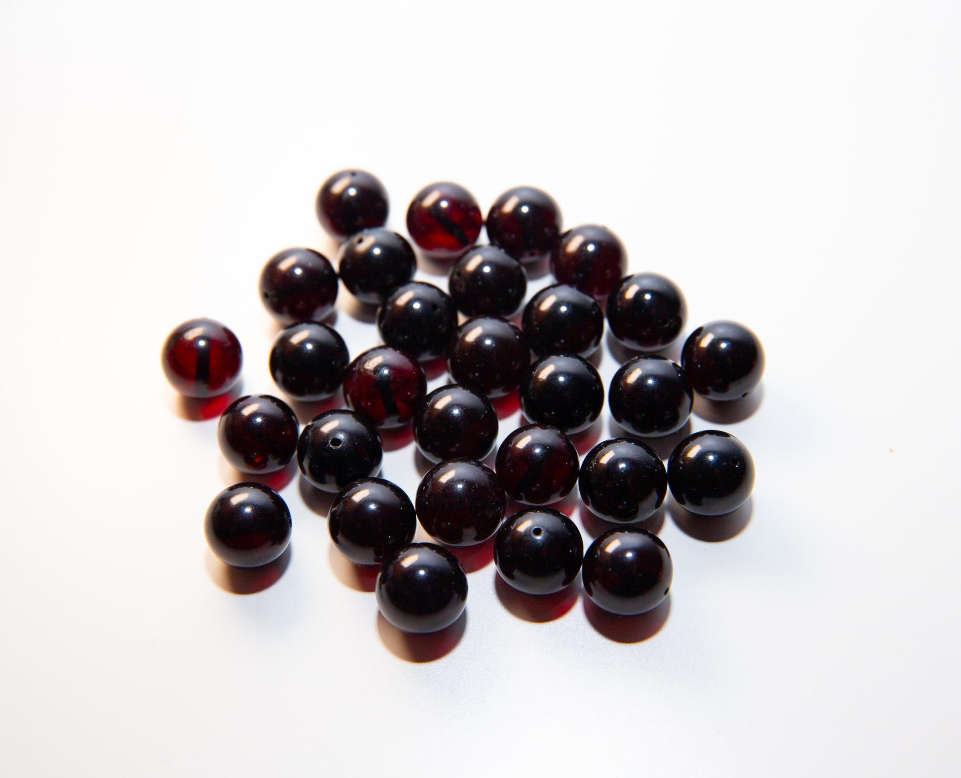 Cherry Baltic Amber Beads: Round Pressed Gemstone Beads (5 pcs)