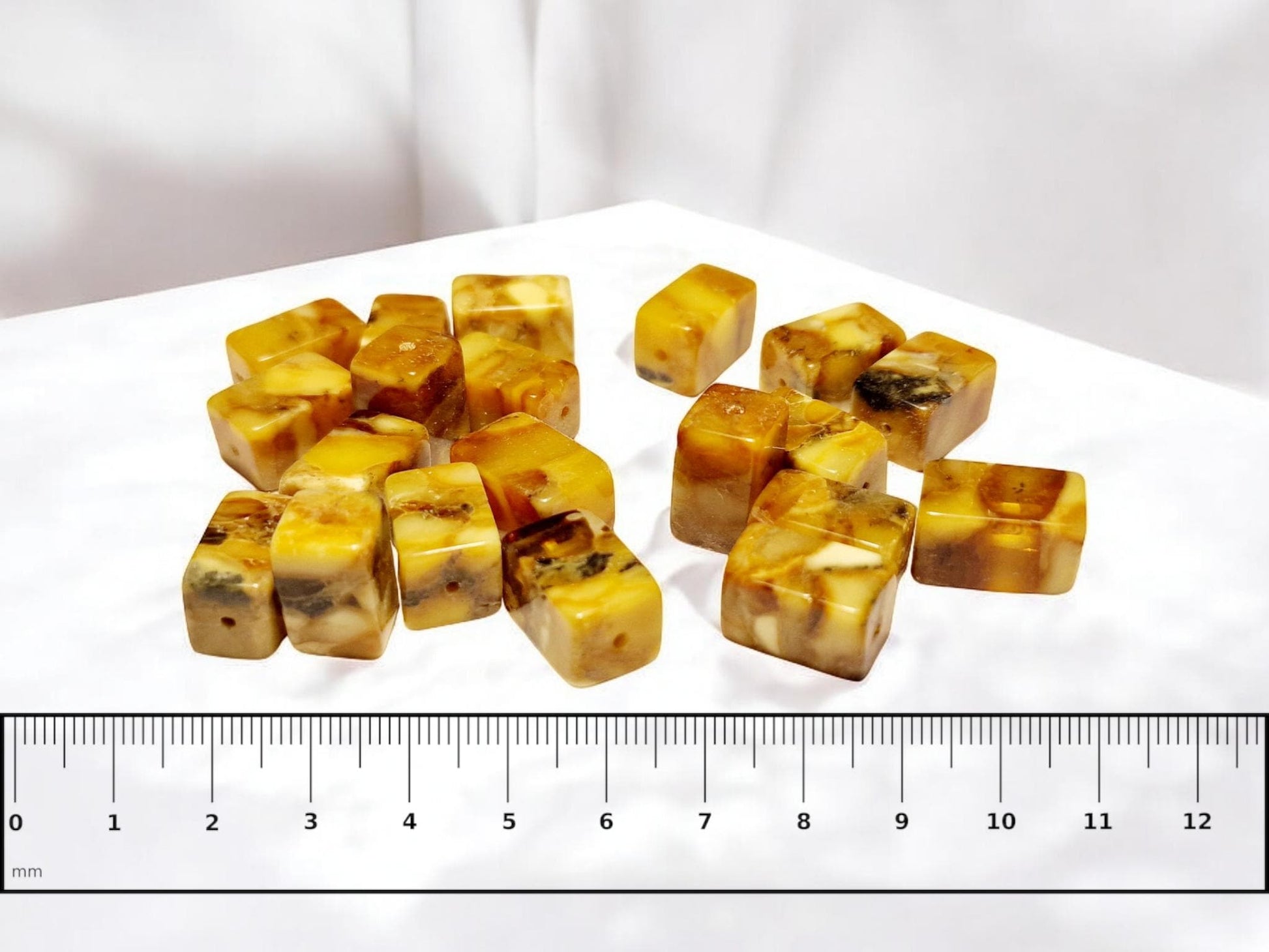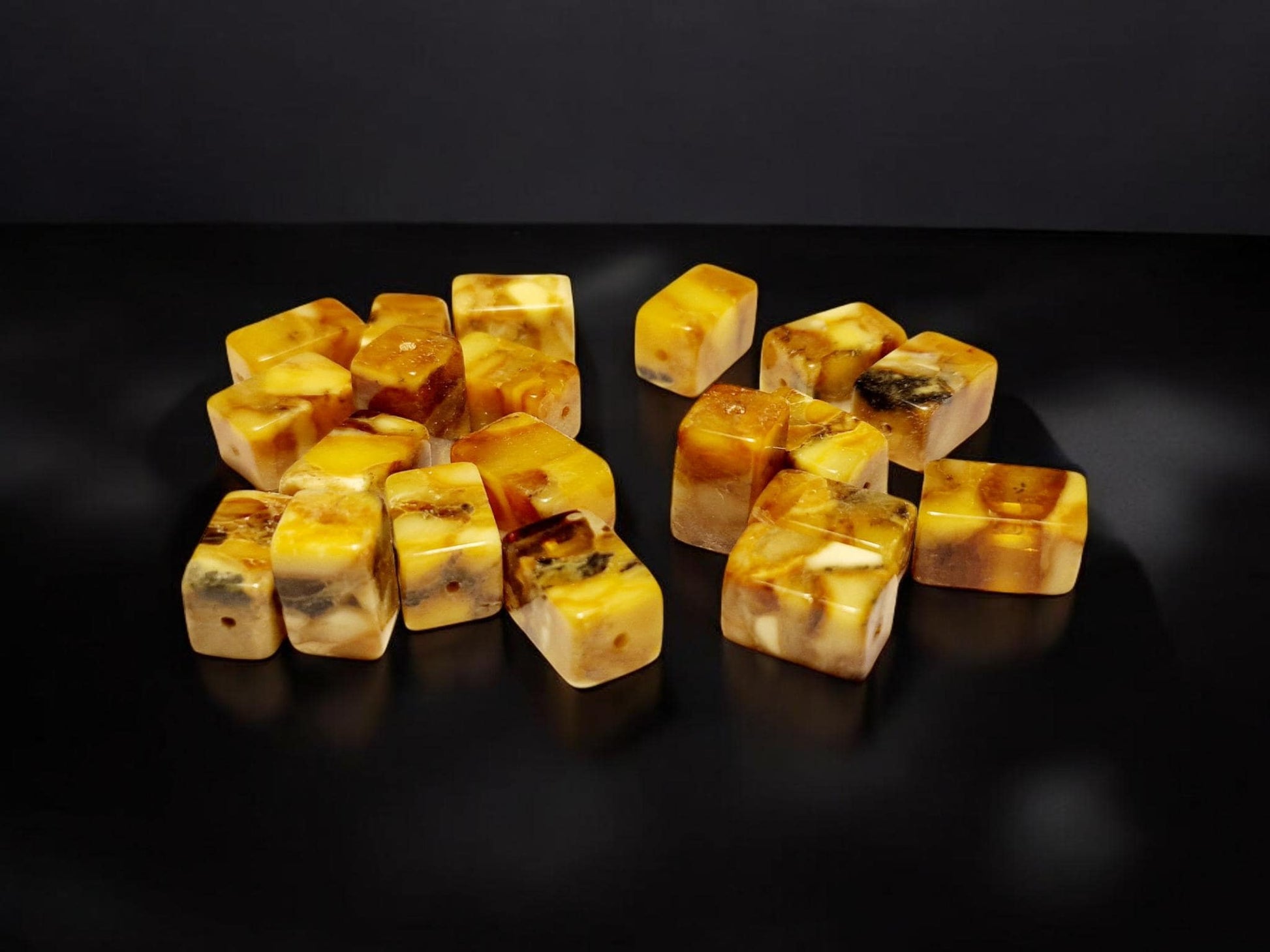 Polished Baltic amber beads Mix color / Loose amber beads with hole / Beads size 8-10 -- 13-15mm / Oblong shape / 5pcs
