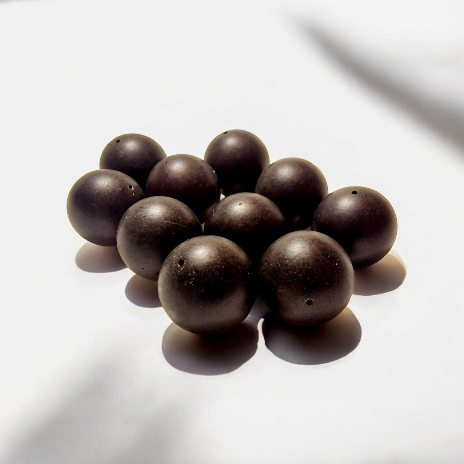 Raw Black Baltic Amber Beads: Round Pressed Loose Beads (18-21mm)